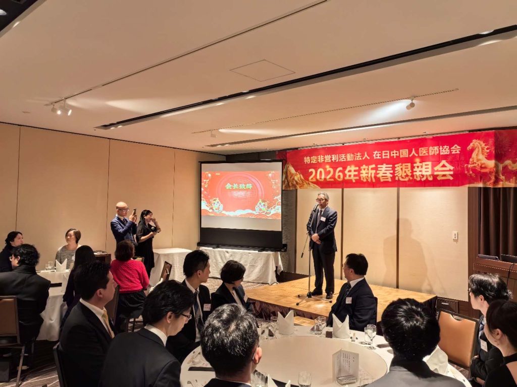 2026年新春懇親会を開催 2026年3月15日 最終更新日時 : 2026年3月15日 Wu ming 2月28日医師協会は「東天紅上野店飛鳥厅」にて「2026年新春懇親会」を開催しました。当日は中国駐日本大使館関係者、友好団体、賛助会員・会員など50名が出席し、挨拶や祝辞の後、和やかな雰囲気の中で交流を深めました。